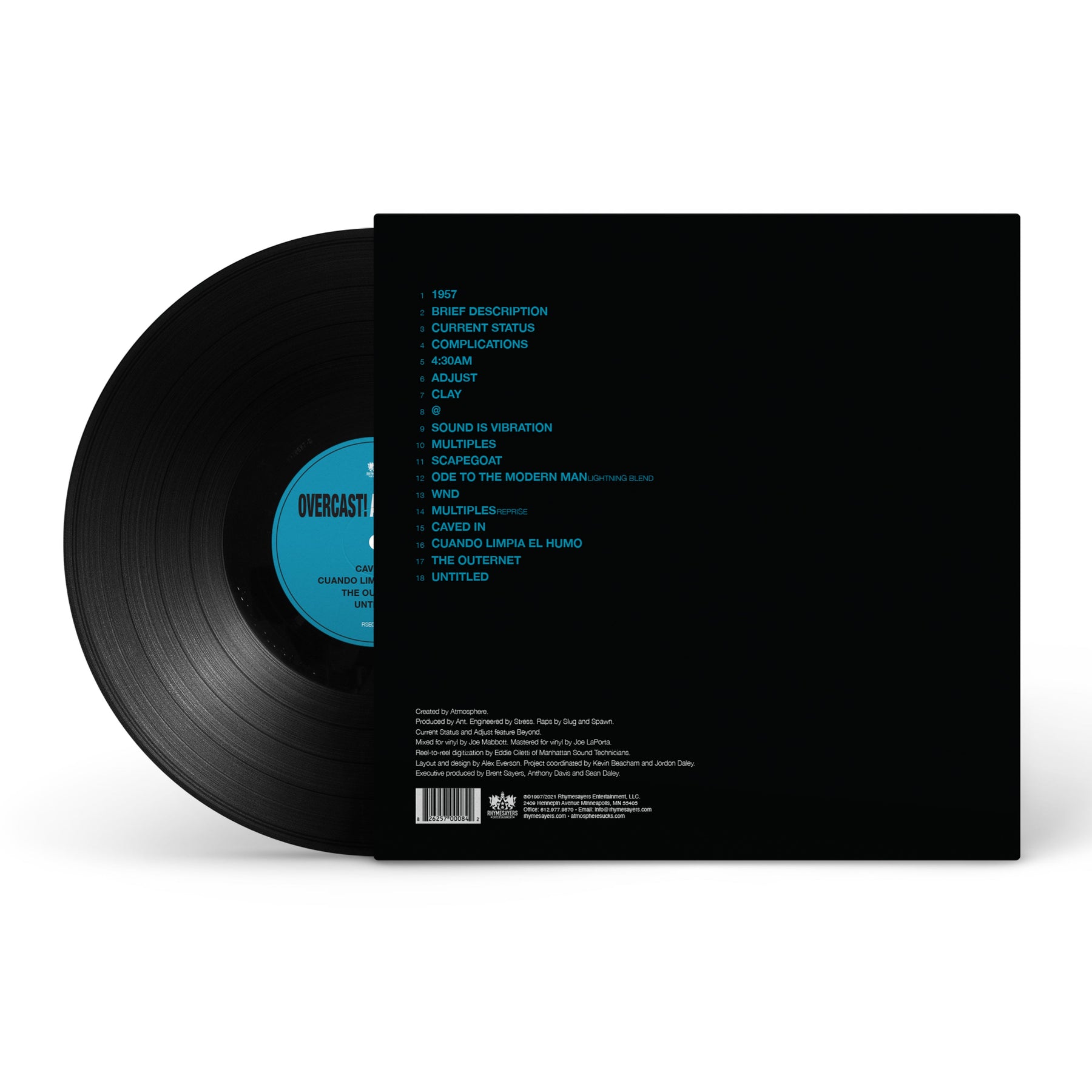 Although widely considered an underground classic, the full-length Overcast! album was never pressed on vinyl until a limited edition run hit stores in 2017, in celebration of the album's 20th anniversary. Now re-packaged and produced for wider distribution, fans everywhere can add this re-mastered masterpiece to their collection. Celebrate Atmosphere's legacy of creative expression with the album that started it all.